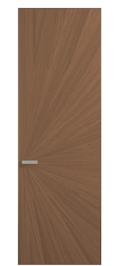 Полотно Rift в скрытом алюминиевом коробе становится полноценным элементом декора. В коллекции представлено 9 моделей дверей в высоте до 3 метров. Рисунок раскладки шпона варьируется от простого до сложного. «Рубашка» для каждого полотна подбирается вручную по цвету, текстуре и фактуре.